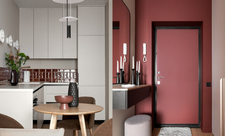Собрали тренды: интерьер квартиры 35 кв. м в бежевых и винных тонах