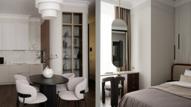 Дизайнер создала впечатляющий интерьер с использованием цвета и разнообразных фактур.