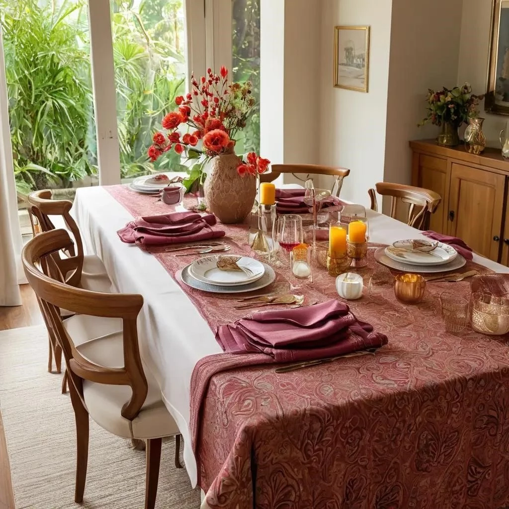 - Акценты: Раннеры, дорожки на стол, тканевые салфетки – яркие акценты, обновляющие интерьер.