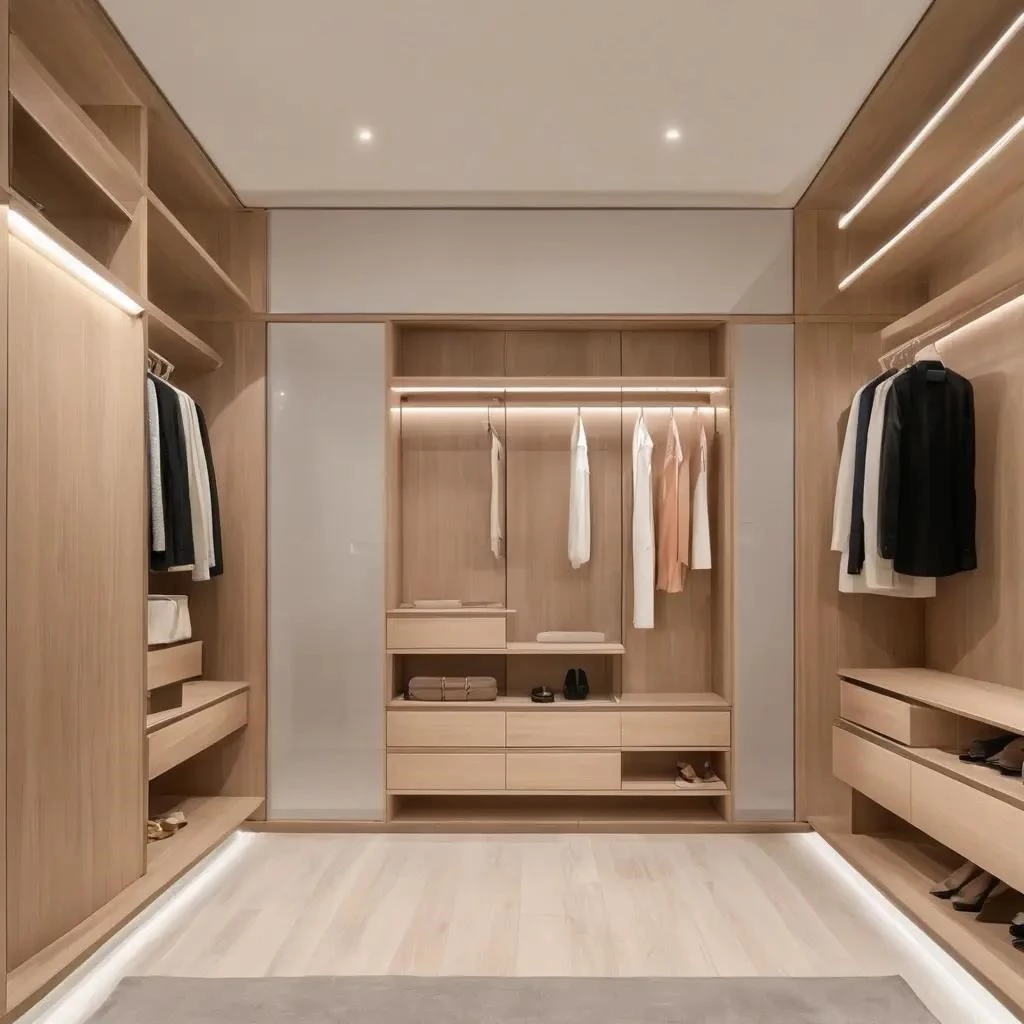 - Расположите освещение гардеробной равномерно, избегая теней.
