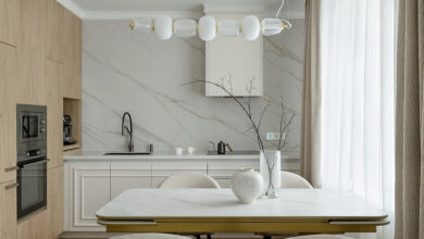 На кухне на первое место при выборе отделки выходят прочность и простота в уходе. Брызги, жирные пятна и высокие температуры делают это помещение также очень прихотливым. Сегодня многие дизайнеры стремятся использовать жидкие обои на кухне, и фото интерьеров от профи доказывают, что можно декорировать не только места вдали от плиты и мойки, но даже кухонный фартук. Безусловно, это не тот материал, который выдержит агрессивную чистку после каждого приготовления еды. Но если установить защитное стекло по периметру фартука, проблема будет решена.