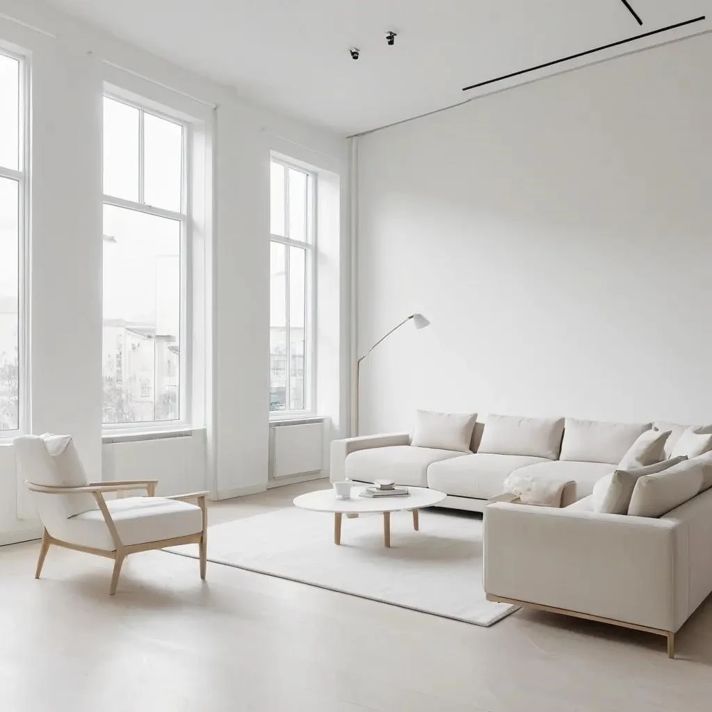 Освещение играет центральную роль. Максимальное использование естественного света через большие окна или легкие шторы, приоритет. Искусственное освещение должно быть многоуровневым. Точечные светильники, скрытая подсветка и бра, направленные вверх, визуально поднимают потолок. Зеркала, расположенные напротив источников света, удваивают его объем и создают эффект дополнительного окна, усиливая оптический обман. Акцентная стена, окрашенная в более глубокий, но холодный тон, на дальней стороне комнаты, может создать иллюзию глубины, не уменьшая пространство.