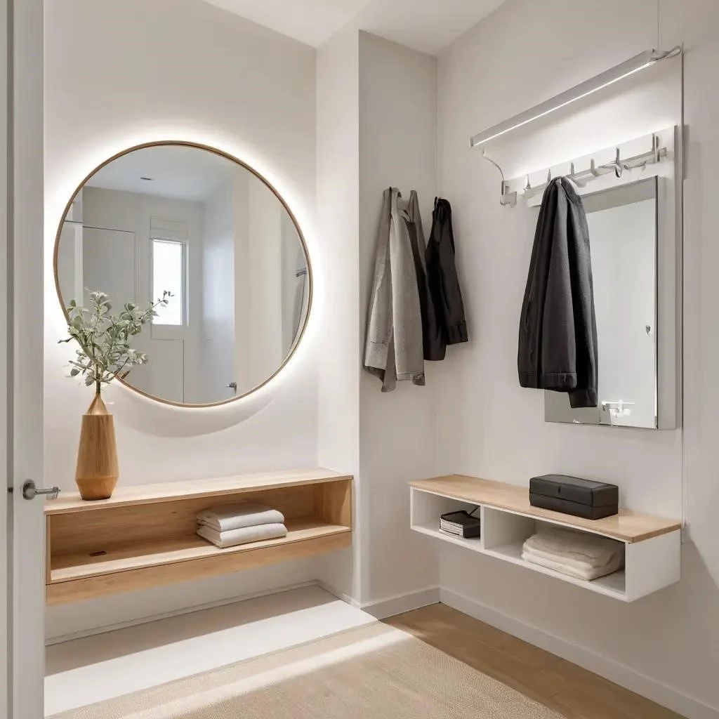 - Зеркало в прихожей: Обязательно для визуального расширения и света.