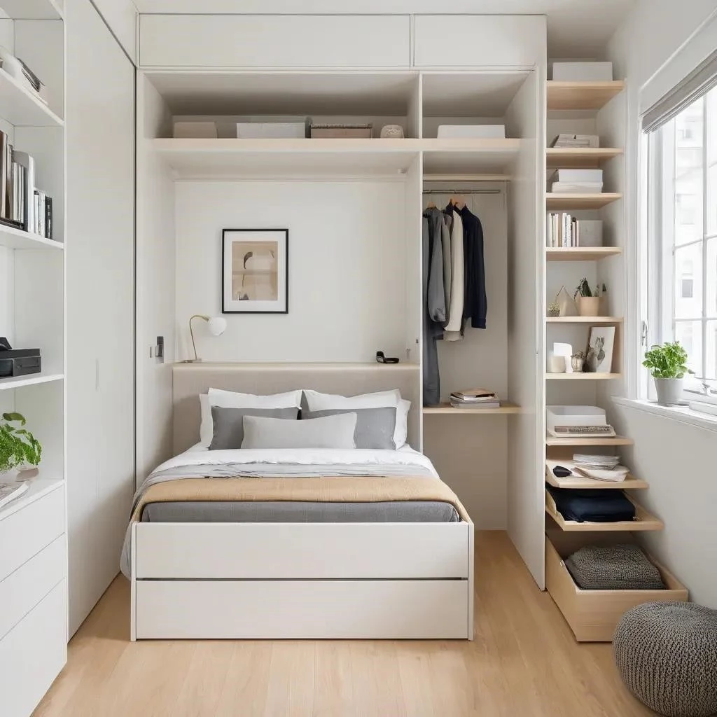 Для спальни студии‚ хранение одежды и хранение обуви решается умными решениями. Под кроватью — сезонные вещи. Скрытое хранение (встроенные шкафы‚ модульные системы с антресолями) поддерживает эстетику компактного жилья. Лайфхаки для маленьких квартир: многоярусные вешалки‚ вакуумные пакеты.
