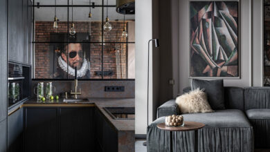 Таким образом, интерьер получился монохромным с белыми и черными акцентами, которые добавляют графичности.